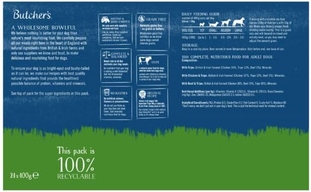 Butcher's Tripe Loaf Recipes Dog Food Tins, 24 x 400g
