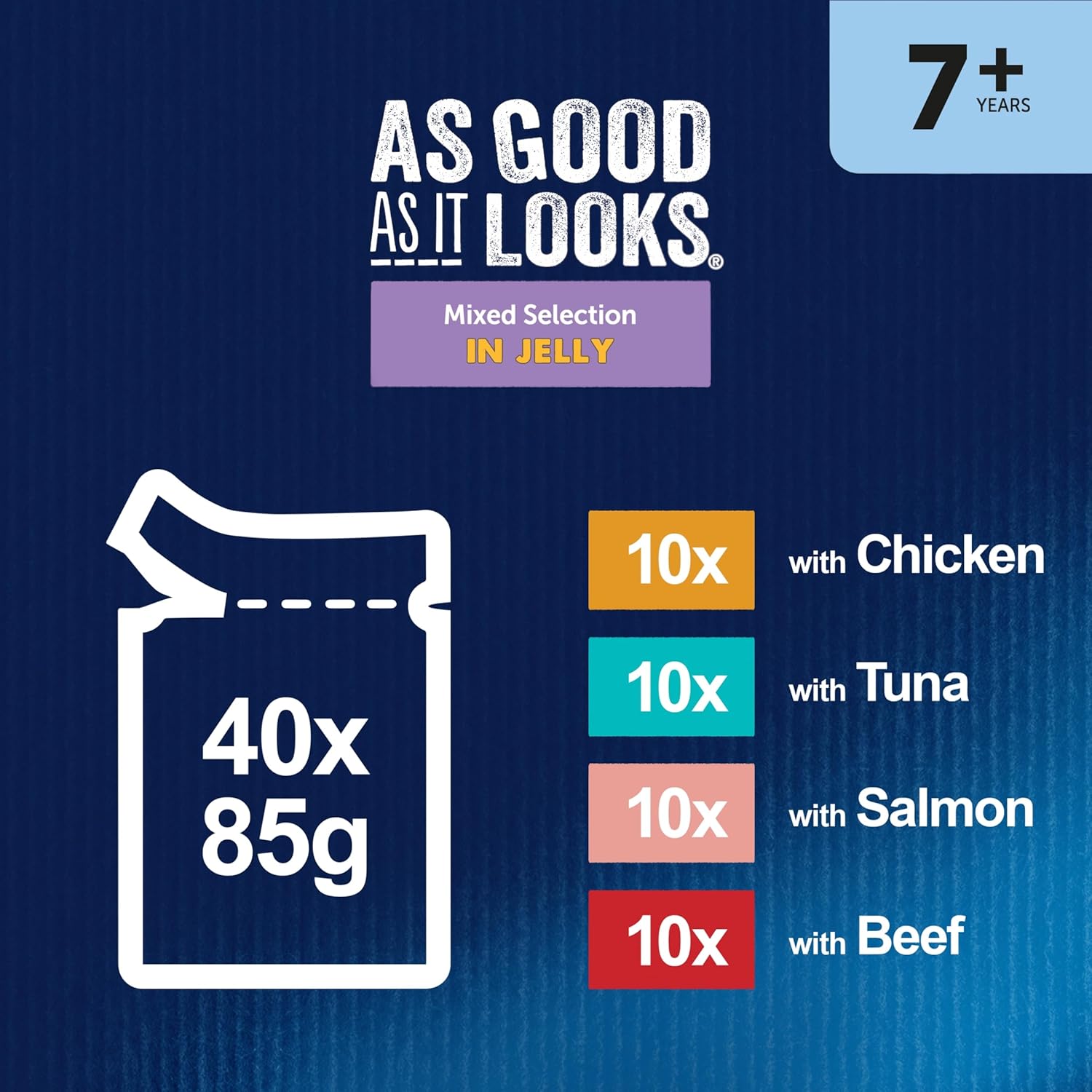 Felix As Good As It Looks Senior 7+ Wet Cat Food Mixed Selection in Jelly — 40 × 85g Pouches