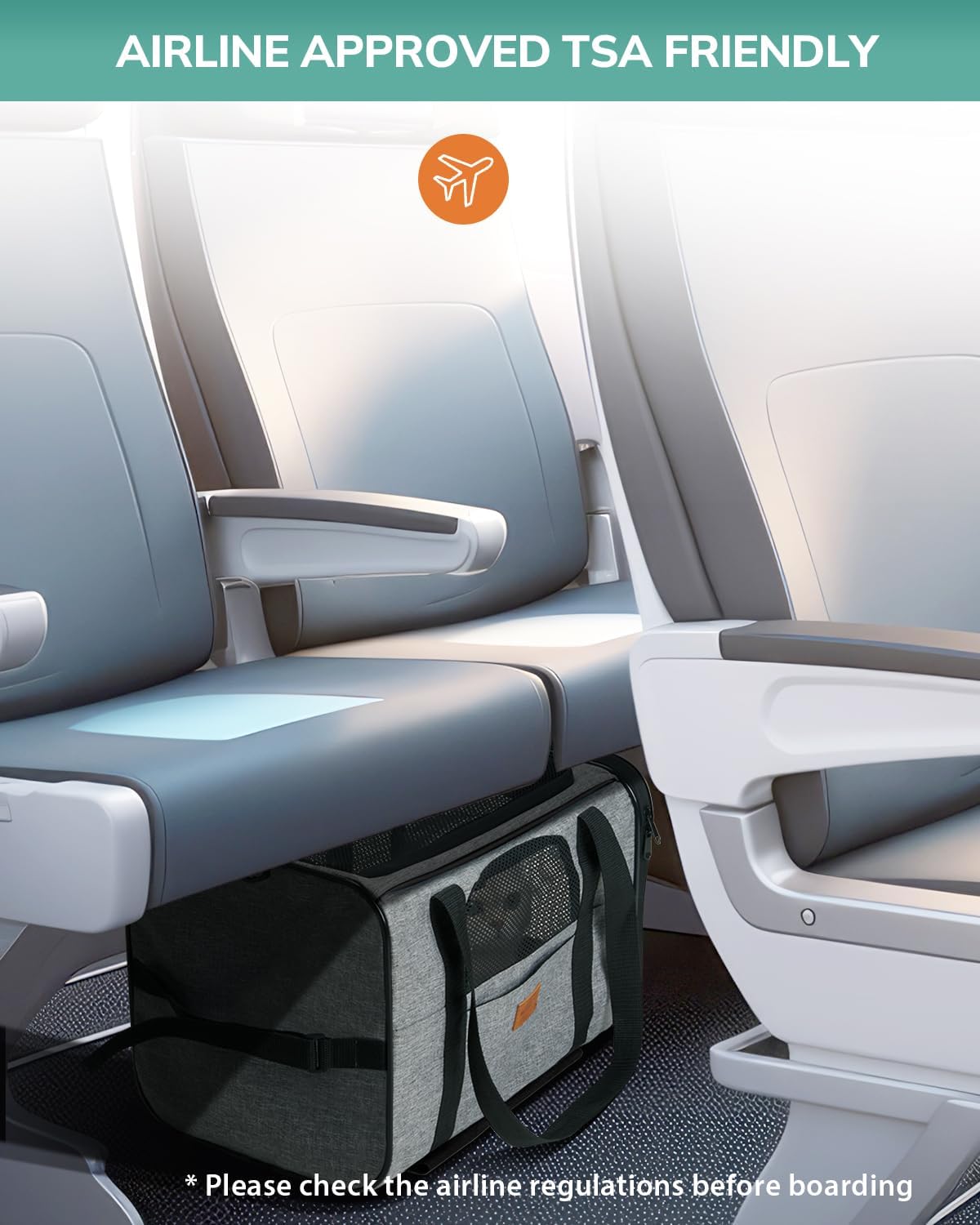 Airline Cabin Approved: Compliant with major airline standards. Fits under airplane seats once wheels or the bottom panel are removed. Accommodates pets up to 6.35 kg / 14 lbs (verify airline restrictions before travel).